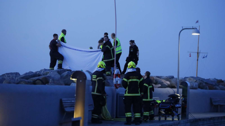 Stor udrykning til havn: Barn falder ned mellem sten i mole