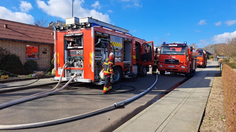 Kæmpe brand i villakvarter: Mindst fem brandbiler rykker ud