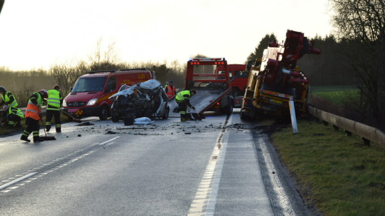 Motorvej fuldstændig afspærret efter færdselsuheld