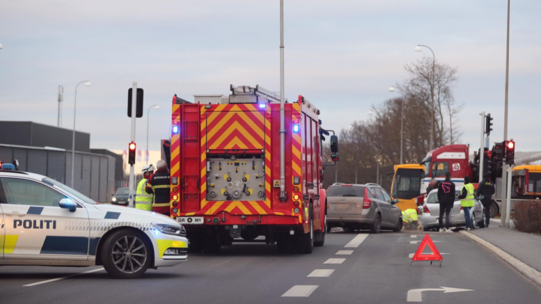 Flere ambulancer rykker til færdselsuheld: Politiet anholder en person
