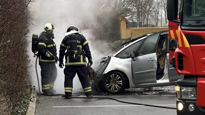 Kirke Hyllinge: Brandvæsenet slukker flammer i bil