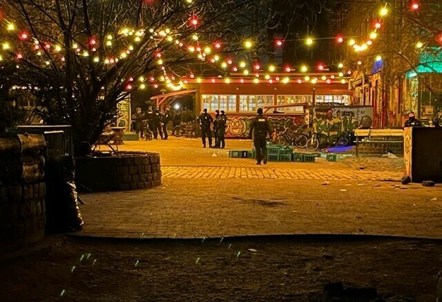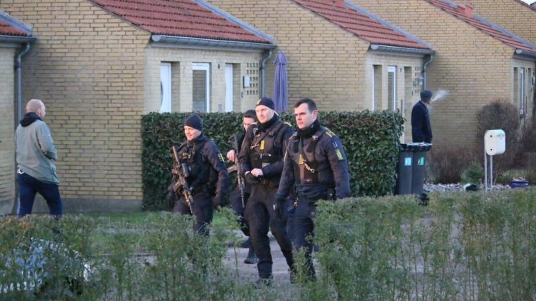 Betjente bevæbnet med maskinpistoler anholder flere personer