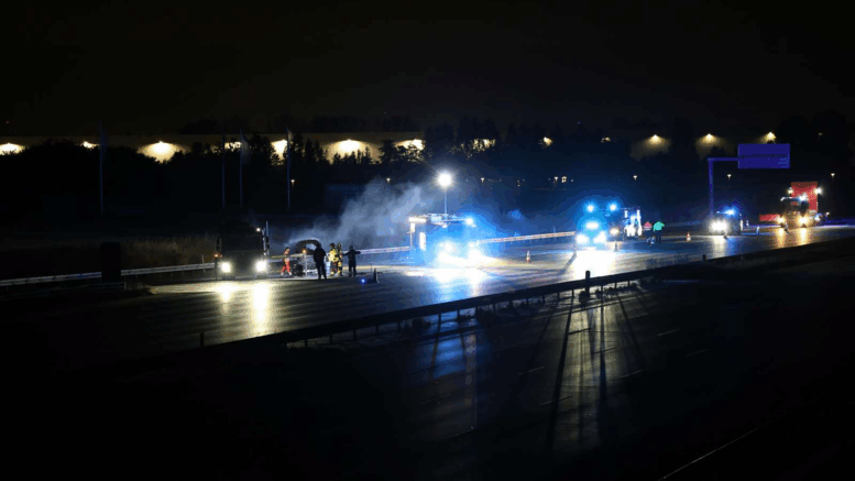 Overtændt: Voldsom natlig bilbrand på motorvejen