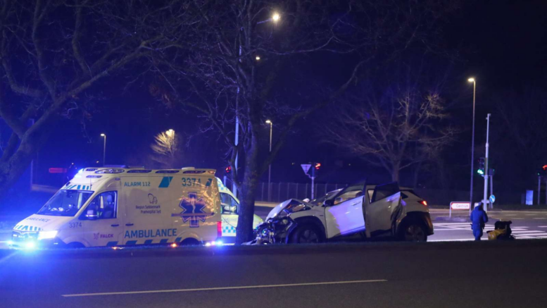 Stort opbud af redningsmandskab: Personbil holder smadret foran træ