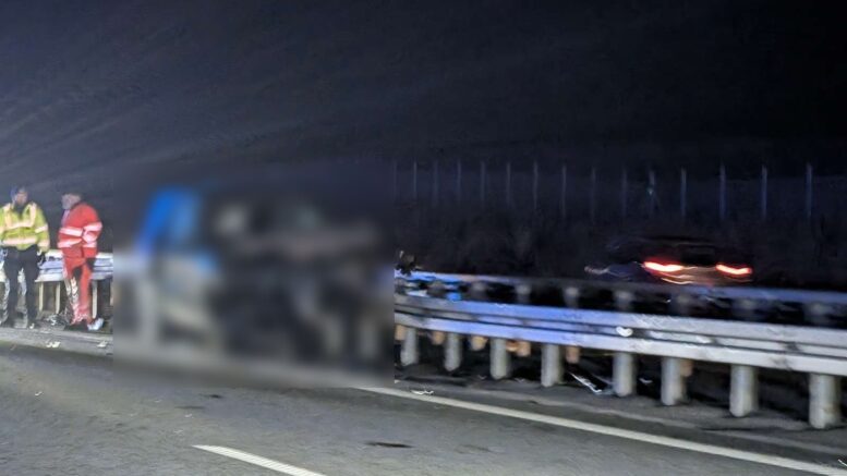 Lukker motorvej i flere timer efter alvorligt uheld: ‘Bilen er kilet fast i autoværnet’