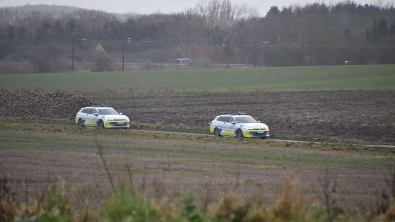 ‘Der er tilkaldt en ambulance til stedet’: Bil ender på taget i grøften