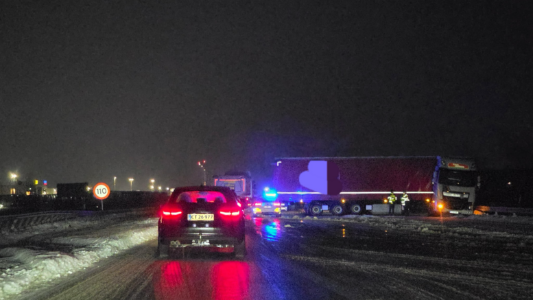 Trafikkaos: Lastbil spærrer vejen efter voldsomt uheld