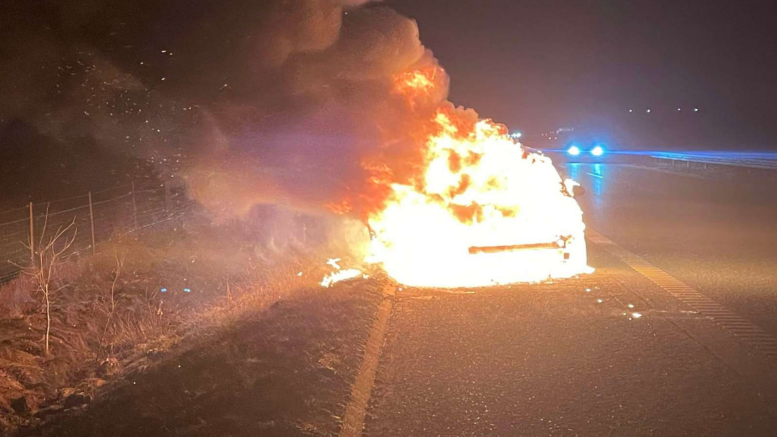 Voldsom bilbrand på motorvej