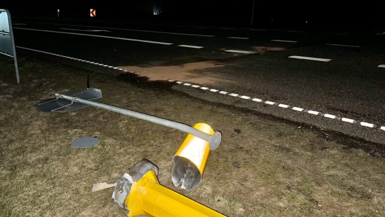 Bil påkører vejskilt: Bilist kørt med udrykning til hospitalet