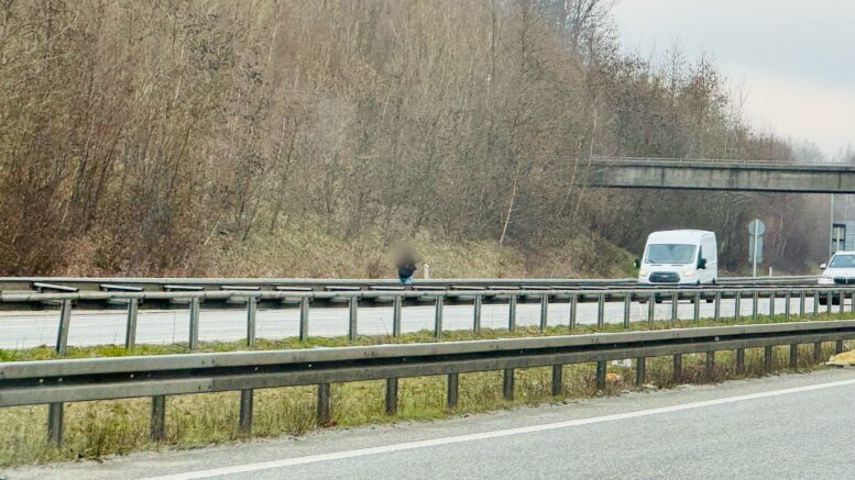 Pas på! Mand går på motorvejen