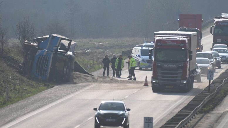 Væltet lastbil giver massiv kø på motorvej