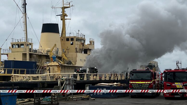 Stor brand i gammel isbryder: Havn spærret af