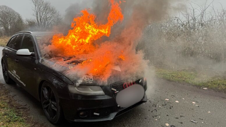 Kraftige flammer i Audi: “Der røg lige 180.000 kroner”
