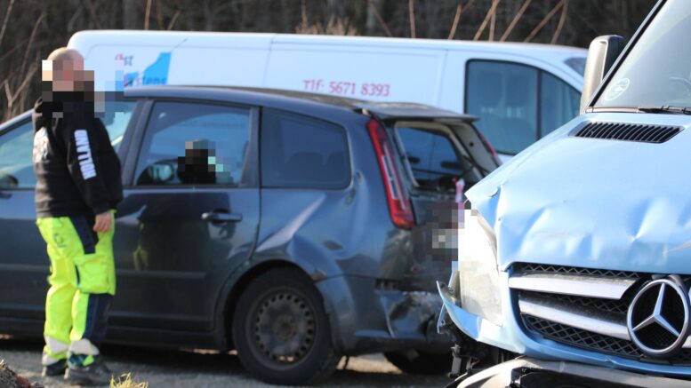 Varevogn og bil i kollisionsuheld: Vej spærret