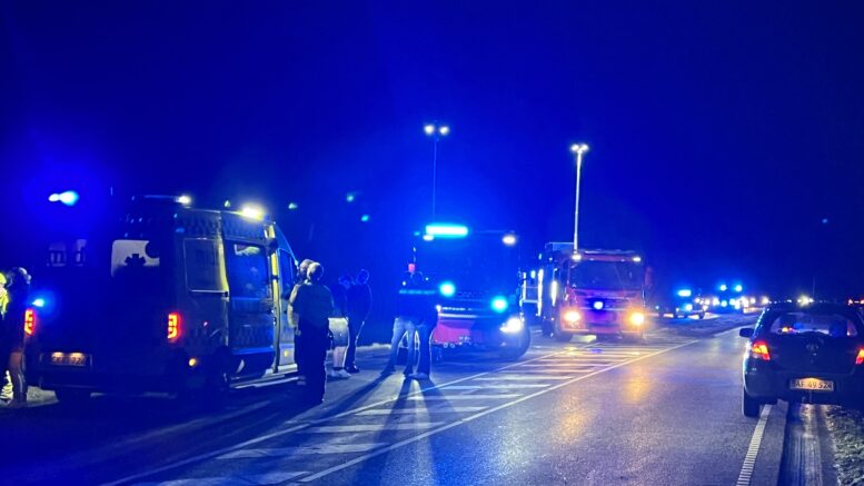 Udrykningskøretøjer haster til omfartsvej efter hårdt sammenstød