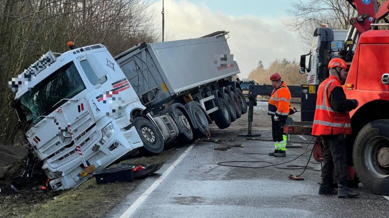 Lastbilchauffør kører af vejen og vælter i grøften: Nyt om hans tilstand
