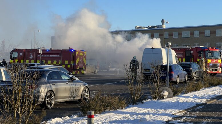 Bil brudt i brand på Roskildevej