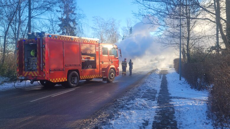 Kraftig bilbrand på skoles parkeringsplads