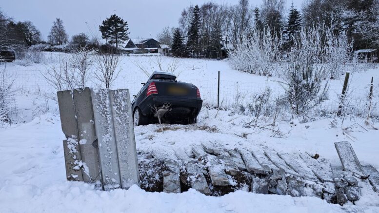 Mercedes kørt i grøften i glatføreuheld