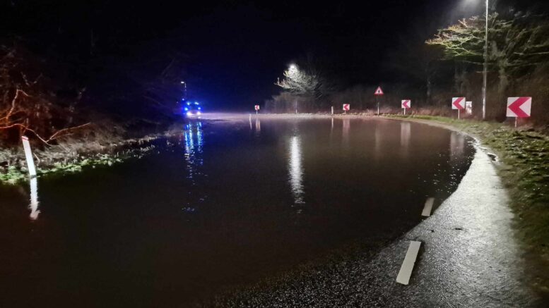 Hovedvej spærret efter kraftig regn: Beredskabet fremme