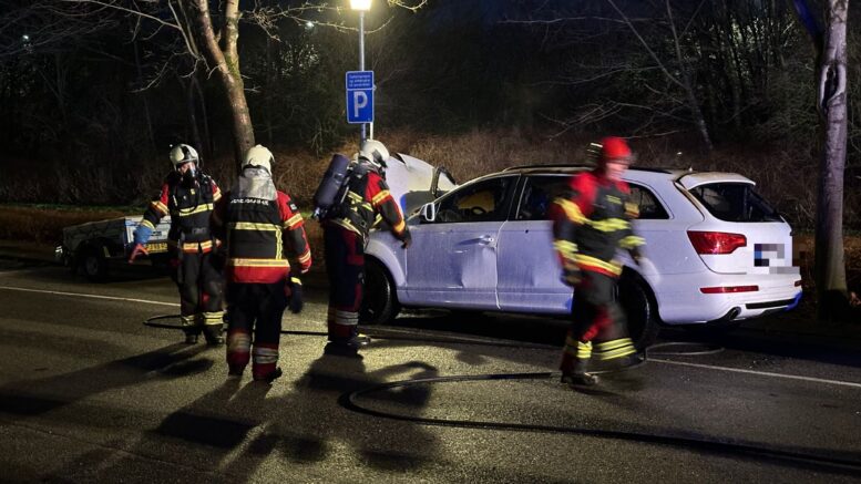 Bilbrand i boligkvarter: Stor Audi brudt i brand