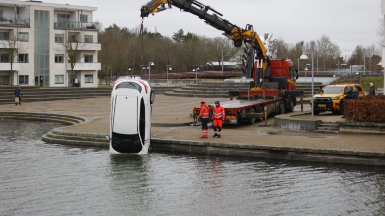 Bil kørt i kanalen ved boligkvarter i Måløv