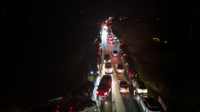 Massiv kø på landevej: Strækker sig over flere kilometer