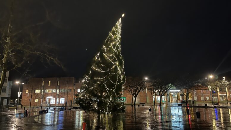 Hvem vinder kampen? Juletræ på torv kæmper brav kamp mod ‘Pia’