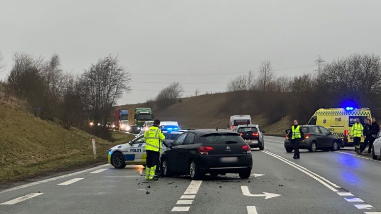 To biler i hårdt frontalt sammenstød: Ambulance fremme på ulykkesstedet