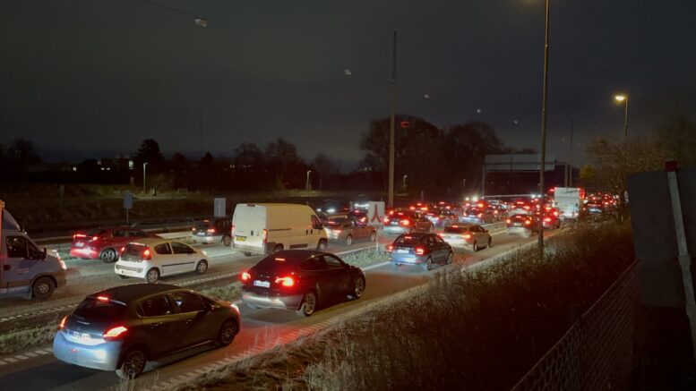 Uheld på motorvej sætter stor prop i trafikken