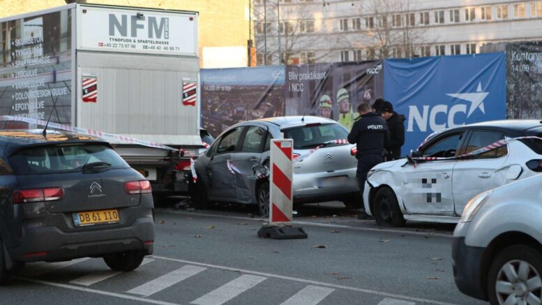 Varevogn brager ind i fire biler i alvorlig ulykke