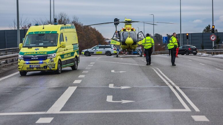 Lægehelikopter landet på motorvejsbro: Stor aktion