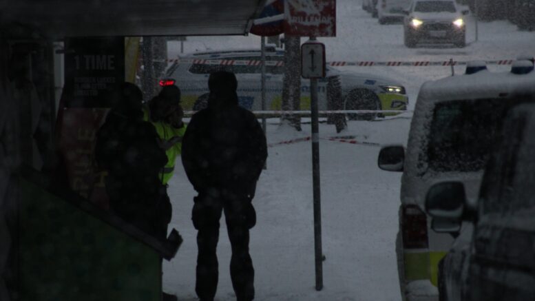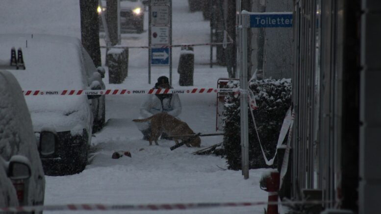 Hundepatruljer og teknikere afspærrer butiksgade i stor politiaktion