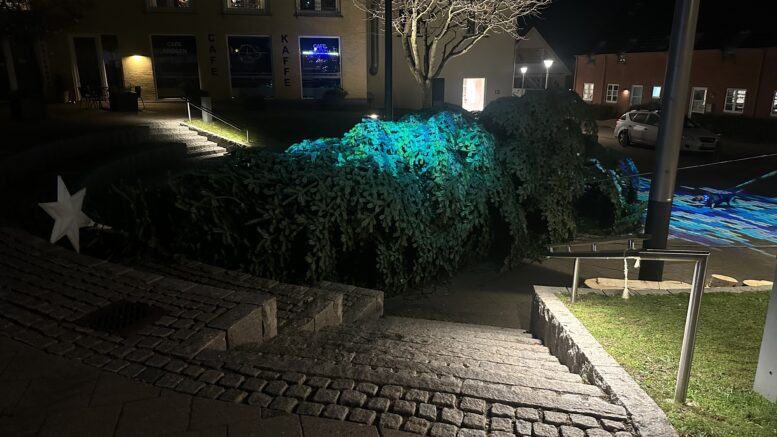 Kunne ikke klare blæsten: Torvets juletræ væltet