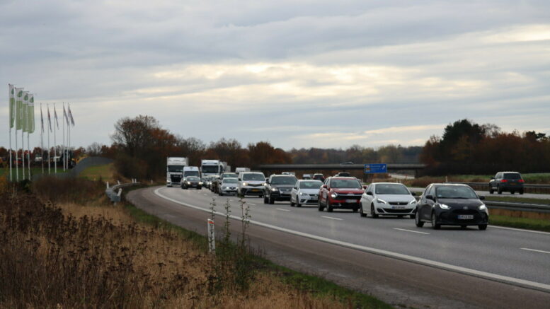 Lang kø på motorvej efter brand i bil: Spor spærret