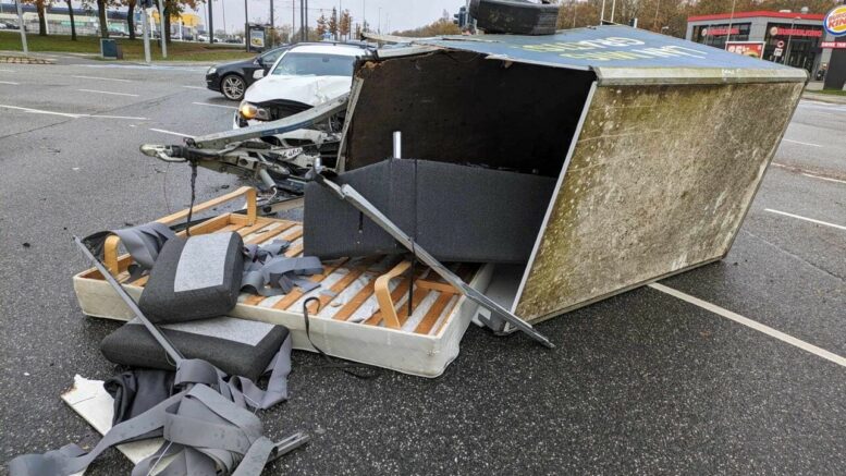 BMW brager ind i trailer: Seng og sofa ligger i krydset