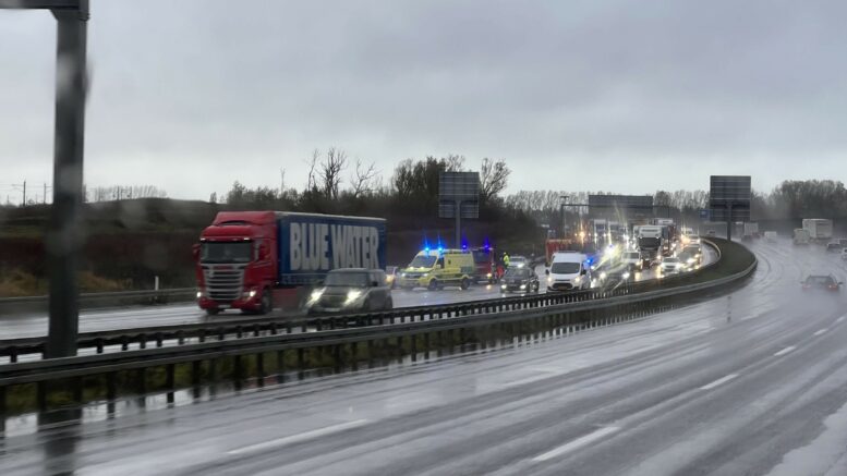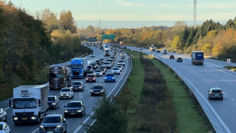 Uheld sætter en prop i trafikken på motorvej: To spor spærret
