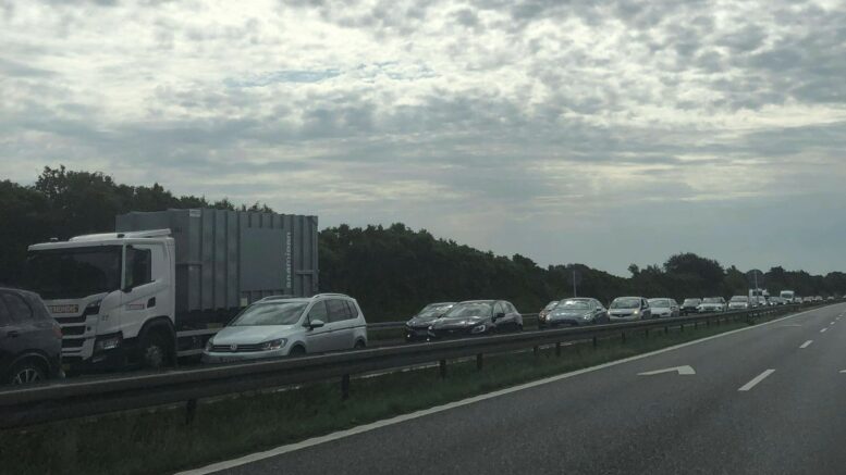 Uheld på motorvej skaber kø