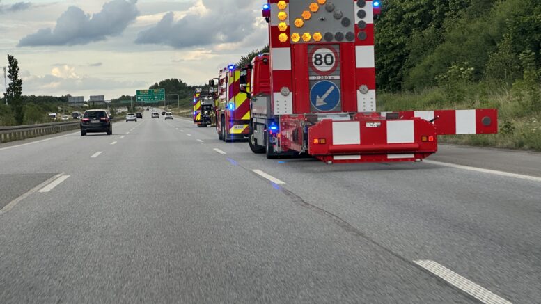 Bil brudt i brand på motorvej: “Nedsæt hastigheden”