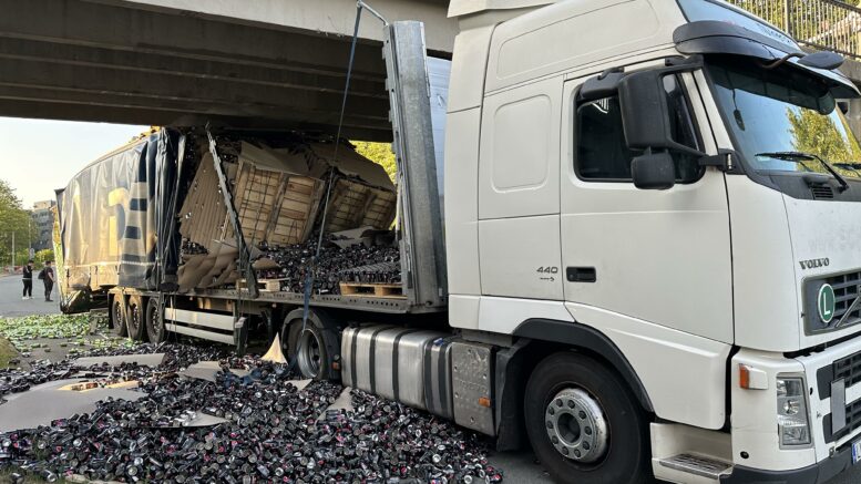 Lastbil brager ind i bro: 7-UP og Pepsi Max-dåser fylder hele vejen