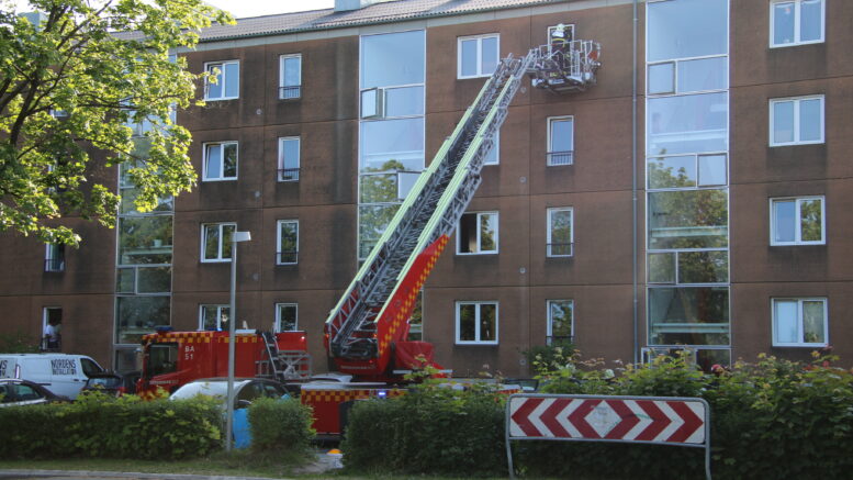 Brand brudt ud i låst lejlighed: Brandvæsnet bryder vinduet op for at komme ind