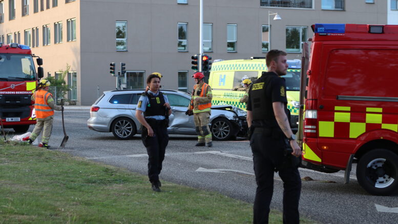 Politibil rammer bilist i alvorligt uheld: Ambulance ankommet