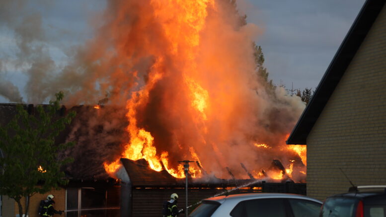 Voldsom brand i hus: Skyhøje flammer kan ses langt væk
