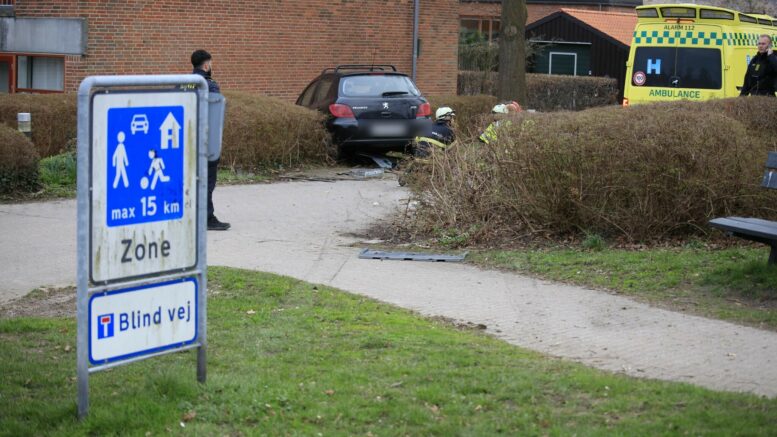 Bil brager ind i hæk i boligkvarter: Redningsmandskab ankommet