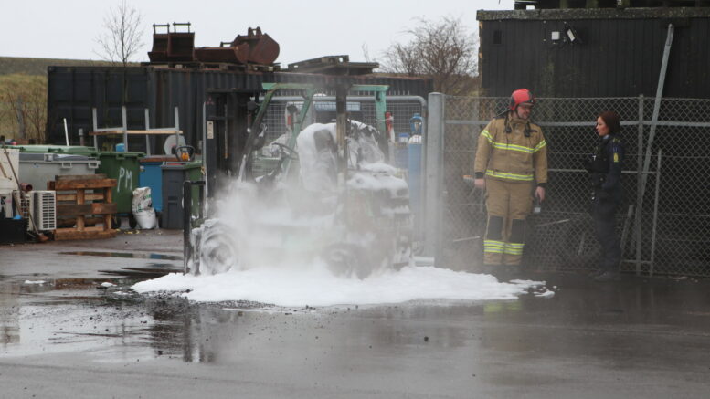 Sprængt gasflaske antænder gaffeltruck på industrivej