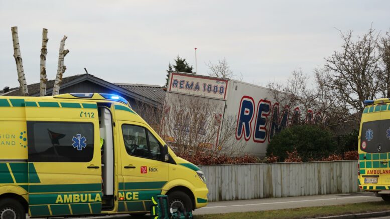 Lægehelikopter lander på villavej: Lastbil braget ind i hus