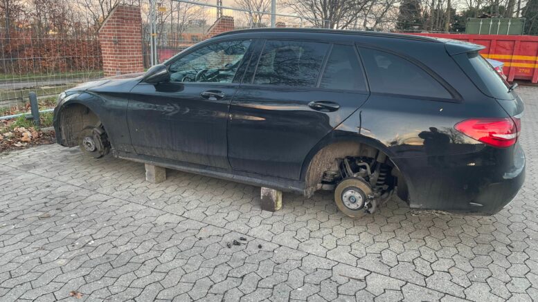 Mercedes sat på fliser: Alle fire hjul stjålet