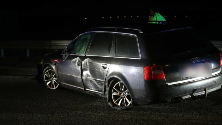Audi brager ind i skilt efter politijagt: Ambulance ankommet
