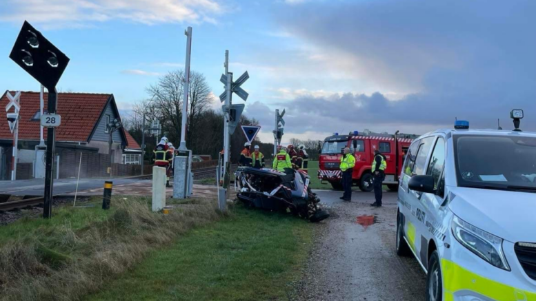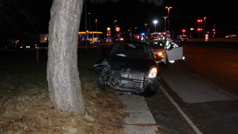 Bil skrider af vejbanen i glatføreuheld: Tre personer fastklemt