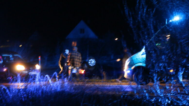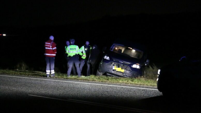 Personbil ender på marken i glatføreuheld: En person tilskadekommet